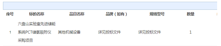 据能源圈了解到,近日,六盘山实验室先进储能系统pct储氢吸附仪中标公告公布。