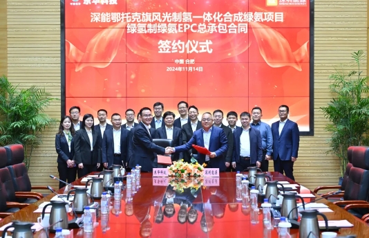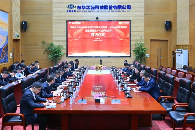 11月14日,深能北方能源控股有限公司与东华工程科技股份有限公司在安徽合肥成功举行战略合作协议暨鄂托克旗风光制氢一体化合成绿氨项目绿氢制绿氨 epc 合同签约仪式。
