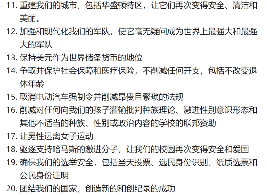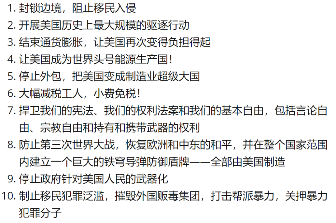 图片来源:《2024年美国共和党纲领和20个承诺》