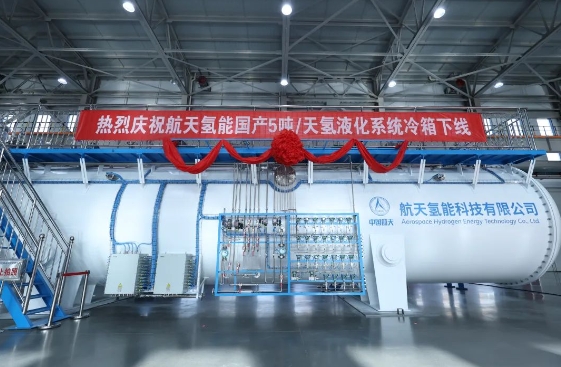 2024年11月12日,航天科技集团六院北京航天试验技术研究所、航天氢能科技有限公司联合研制的国产首套氢克劳德循环5吨/天氢液化系统顺利完成72小时可靠性测试,稳定产出液氢。测试结果表明,氢液化系统额定工况下产量5吨/天,峰值产量6.6吨/天,仲氢含量99.06%,平均能耗11.84千瓦时/公斤液氢(含液氮消耗)。此次5吨/天氢液化系统72小时可靠性测试的成功,标志着我国在大规模液氢制备和应用领域迈出了关键一步。