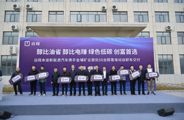 11月19日,山东远程本途新能源汽车有限公司醇氢电动自卸车批量交付仪式圆满结束,本次交付新泰市金埔矿业的50台远程x7m醇氢电动自卸车将服务于城建行业绿色运力示范项目的建设运营,助力新泰城市建设低碳可持续发展。山东泰安市、新泰市相关单位负责人莅临指导,吉利远程新能源商用车集团及重卡营销公司领导出席活动。