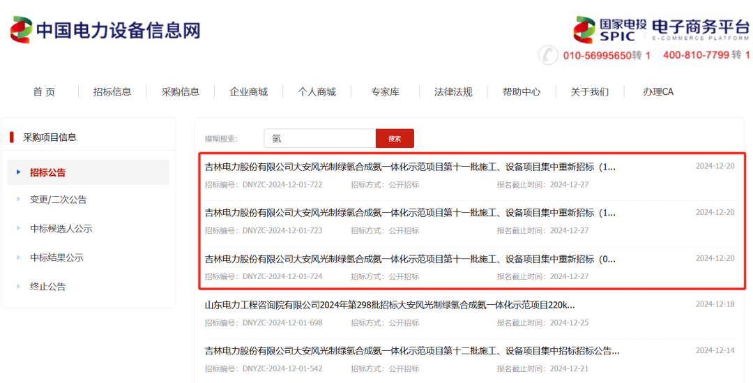 据国家电投电子商务平台消息,12月20日,吉林电力股份有限公司大安风光制绿氢合成氨一体化示范项目第十一批施工、设备项目03标段、11标段、12标段集中重新招标。