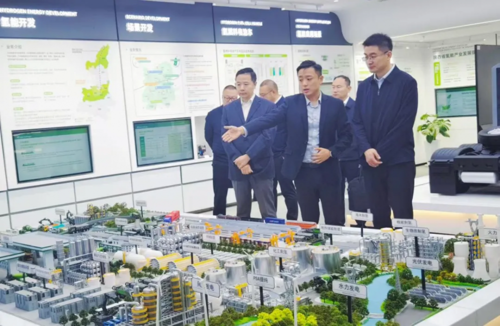 维纳氢能总经理罗添琦向王大磊一行介绍了维纳氢能在氢能场景开发运营的实践情况,并在展厅内进行了简要汇报。
