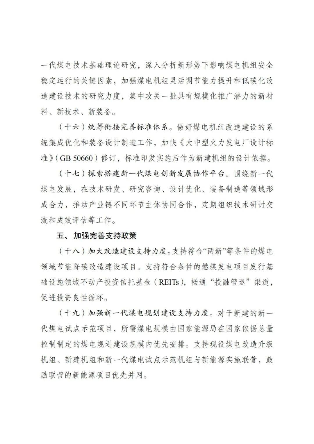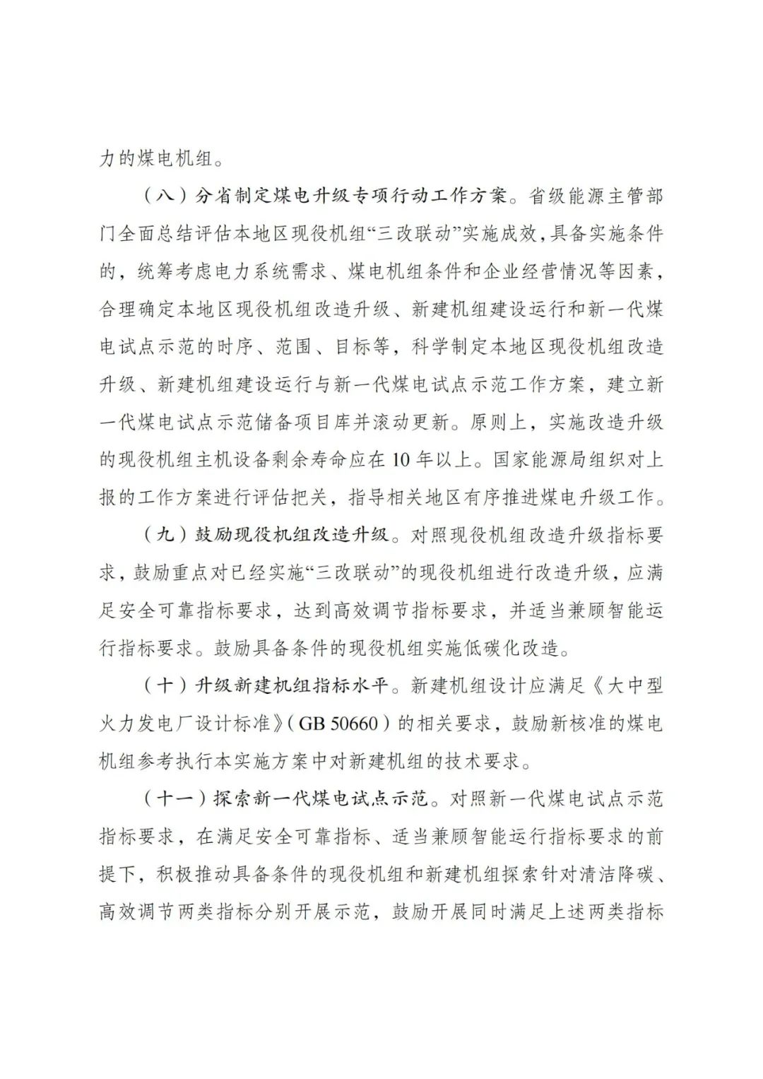 加强新一代煤电规划建设支持力度。对于新建的新一代煤电试点示范项目,所需煤电规模由国家能源局在国家依据总量控制制定的煤电规划建设规模内优先安排。支持现役煤电改造升级机组、新建机组和新一代煤电试点示范机组与新能源实施联营,鼓励联营的新能源项目优先并网。