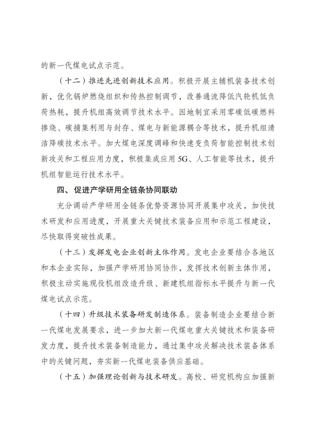 《通知》指出,推进先进创新技术应用。积极开展主辅机装备技术创新,优化锅炉燃烧组织和传热控制调节,改善通流降低汽轮机低负荷热耗,提升机组高效调节技术水平。因地制宜采用零碳低碳燃料掺烧、碳捕集利用与封存、煤电与新能源耦合等技术,提升机组清洁降碳技术水平。加大煤电深度调峰和快速变负荷智能控制技术创新攻关和工程应用力度,积极集成应用5g、人工智能等技术,提升机组智能运行技术水平。