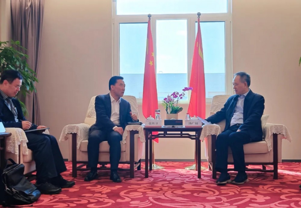 汤广福对张传卫一行的到访表示热烈欢迎,并介绍了实验室成立三年多来,在能源领域取得的科研成果和技术突破,回顾了与相关部委、政府和企业的对接和合作历程。他表示,怀柔实验室将继续聚焦能源领域的战略性、前瞻性、基础性科学技术研究,致力于新能源领域的科技创新,坚持“四个面向”的战略导向,期待携手明阳集团在风光氢等新能源、新型电力系统、成果落地转化以及应用场景创新等方面开展全面深入合作,通过技术先行先试带动企业产业升级,加速培育绿色新质生产力。