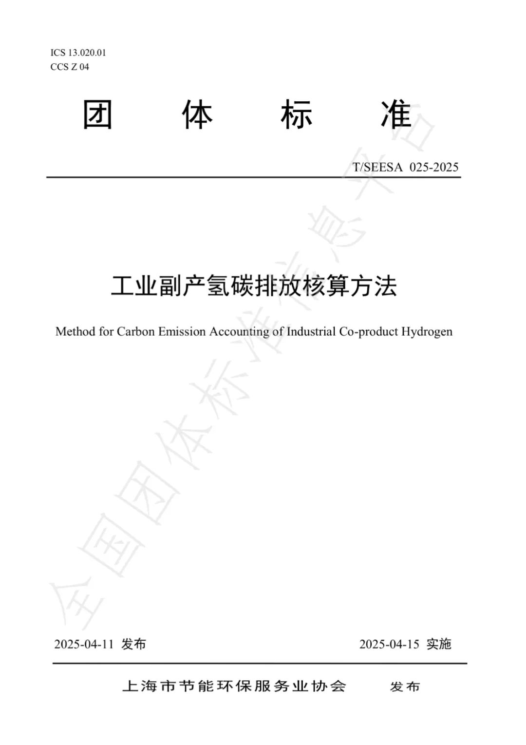 4月15日,由上海环境能源交易所、中石化碳产业科技股份有限公司、国家电投集团碳资产管理有限公司、上海重塑能源集团股份有限公司、羚牛氢能、上海期货交易所、上海长三角氢能科技研究院等多家单位共同编制完成的《工业副产氢碳排放核算方法》团体标准(t/seesa 025-2025)正式实施。该团体标准经上海市节能环保服务业协会批准发布,并已完成全国团体标准信息平台备案。