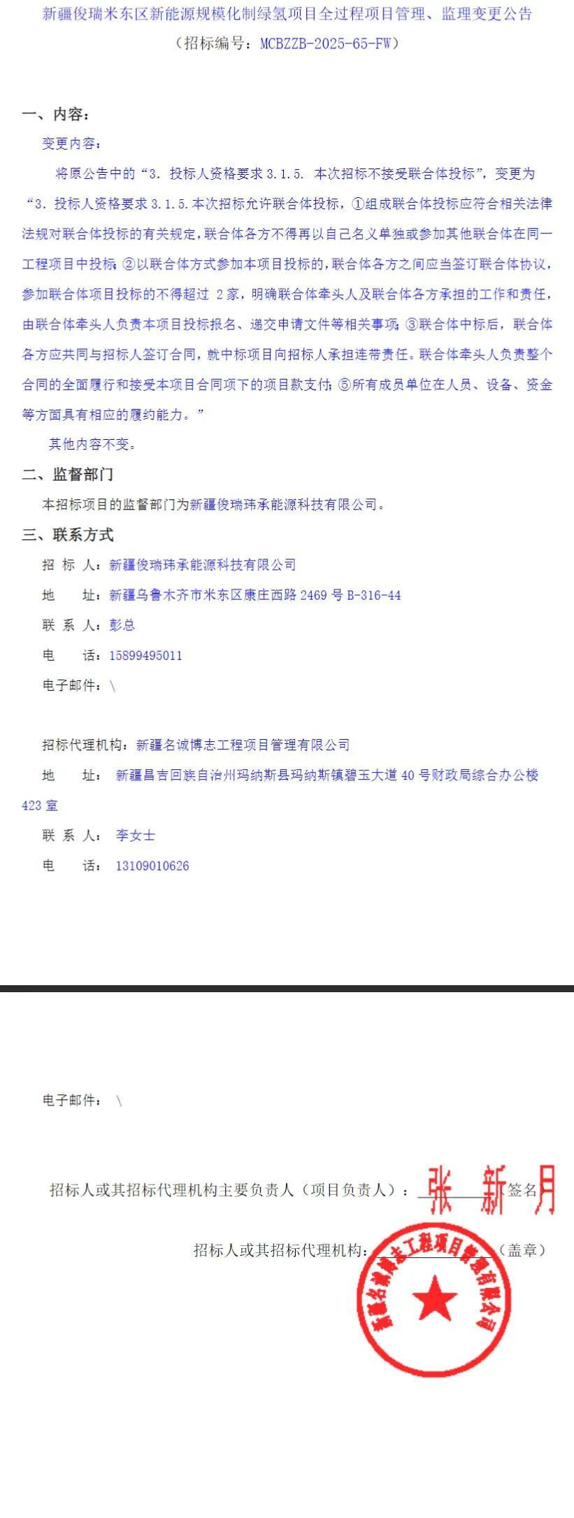 氢能汇(微信号:h2-2005)获悉,近日,新疆俊瑞米东区新能源规模化制绿氢项目全过程项目管理、监理招标公告。
