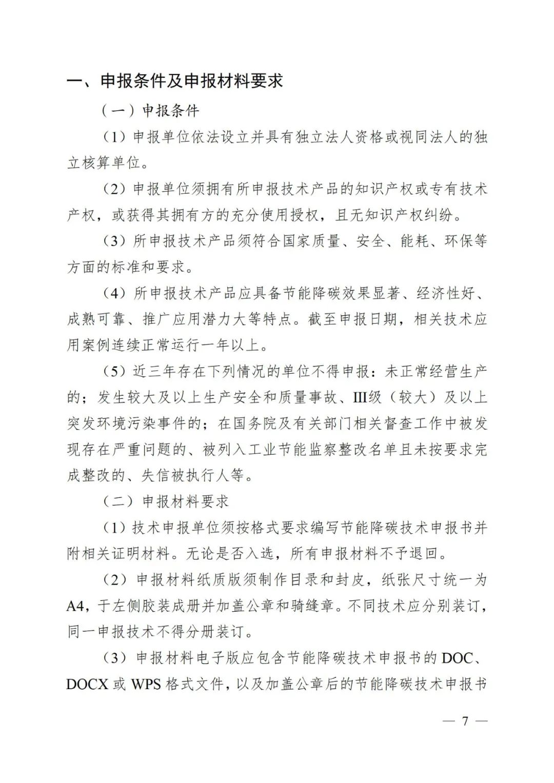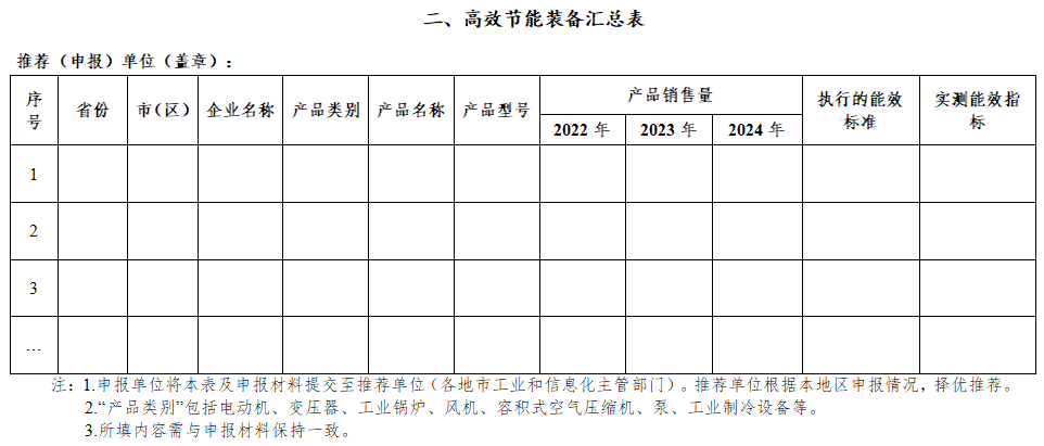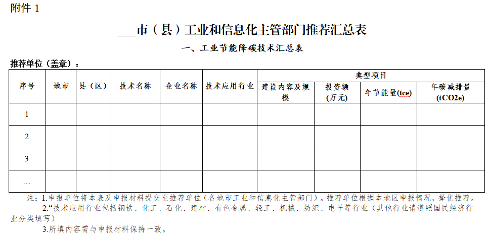 请各地工业和信息化主管部门组织本地区工业企业进行申报,根据申报类别填写节能降碳技术装备申报书(附件2、3),对申报材料审核后择优推荐,并于2025年5月21日前将推荐文件、推荐汇总表(附件1)和申报材料(纸质版一式两份)报送至省工业和信息化厅(节能与综合利用处),电子版材料发送至邮箱。