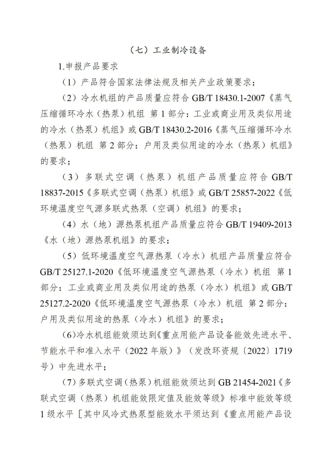 能效指标达到或优于相关国家标准1级能效等级的工业量产装备,包括电动机、变压器、工业锅炉、风机、容积式空气压缩机、泵、工业制冷设备等。