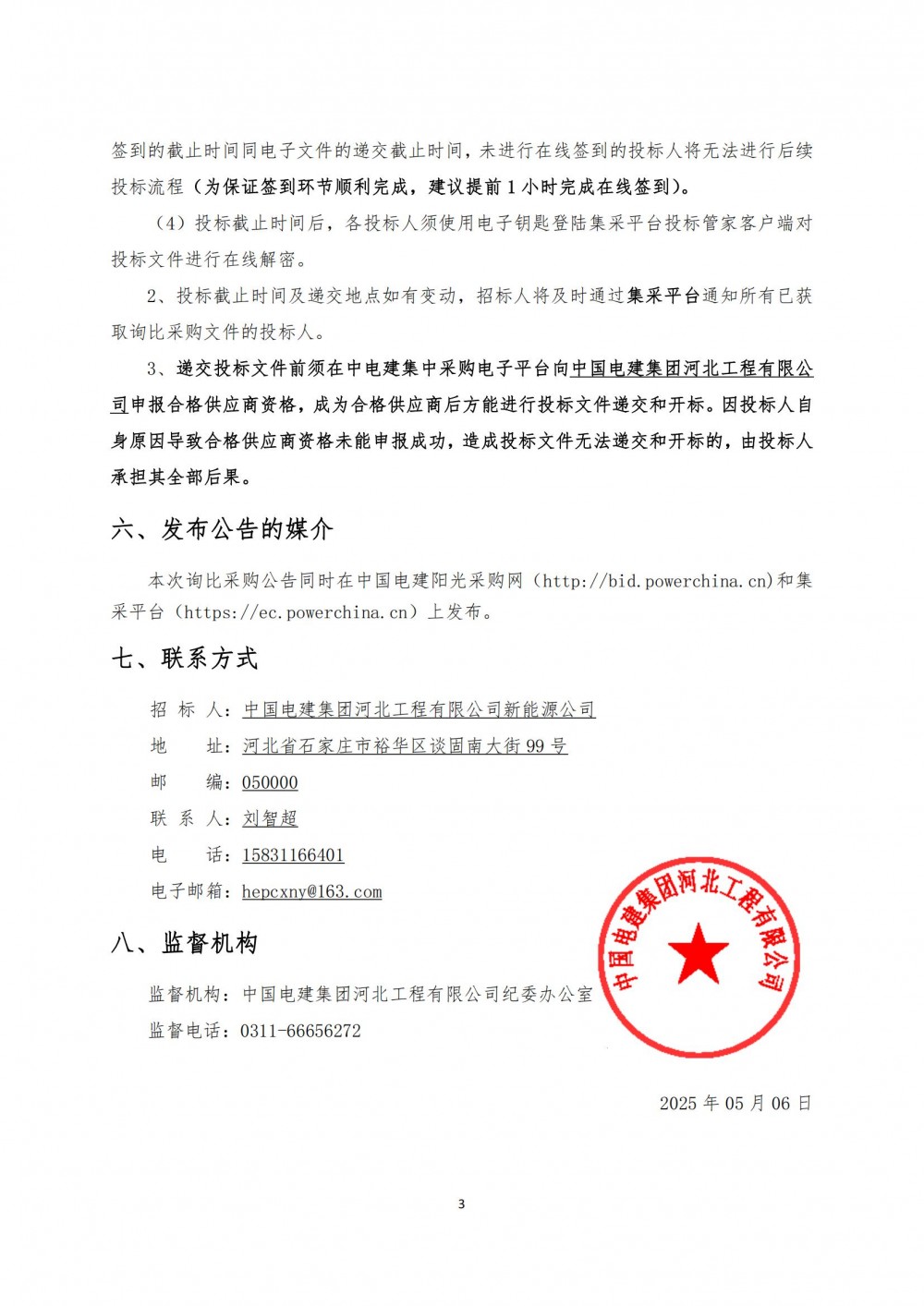 5月6日,中国电建河北工程公司新能源化德储能制氢开关设备采购项目询比公告。