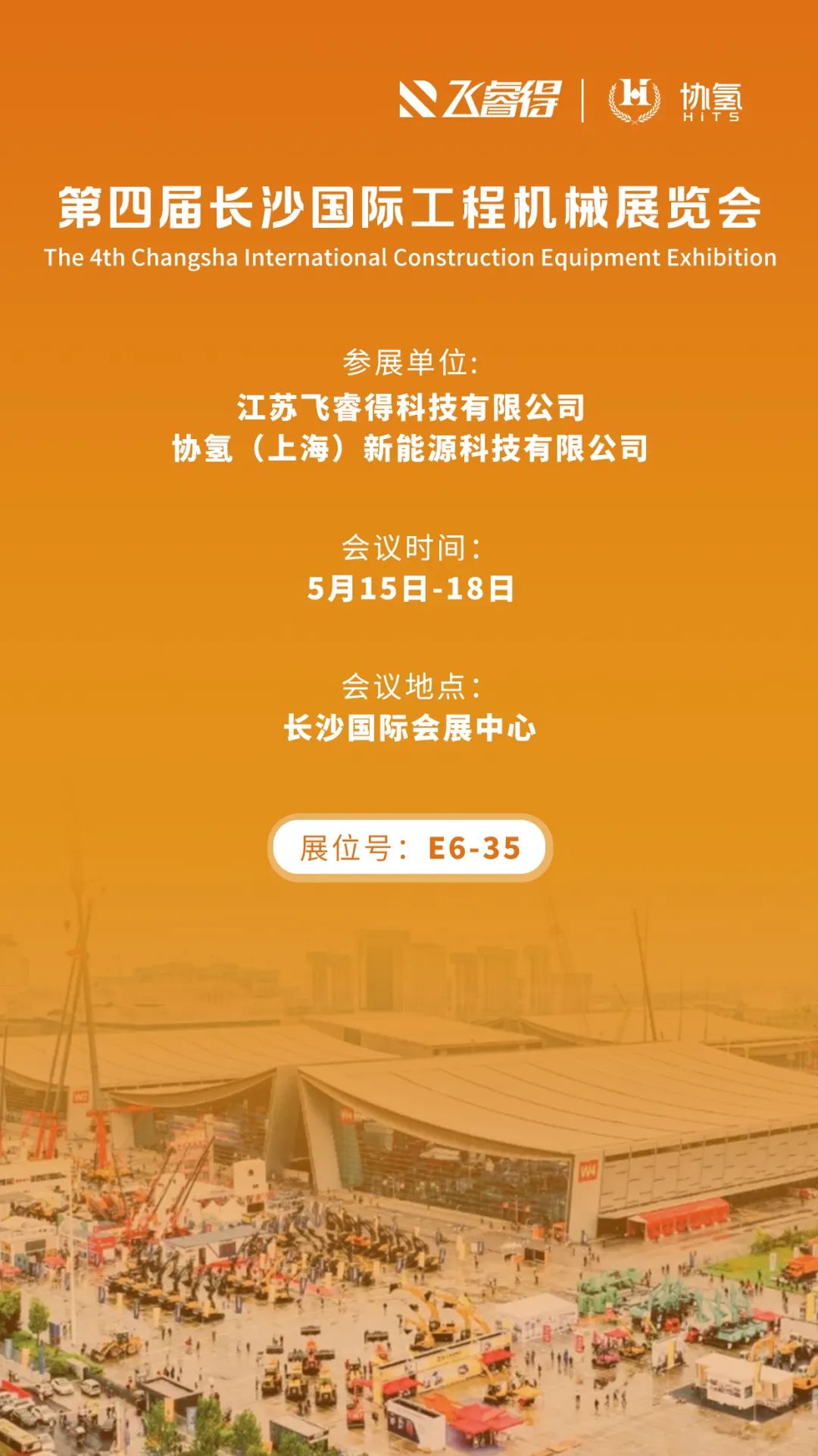 第四届长沙国际工程机械展览会,展览时间:5月15日-18日,协氢新能源将携手飞睿得,共同亮相这场全球工程机械行业顶级盛会!