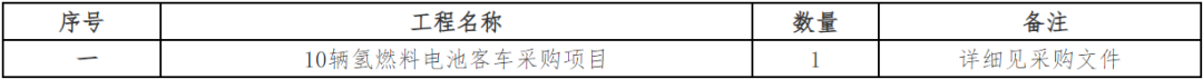 (一)项目名称:10辆氢燃料电池客车采购项目。