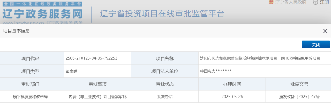 来源:辽宁省投资项目在线审批监管平台、中国能建