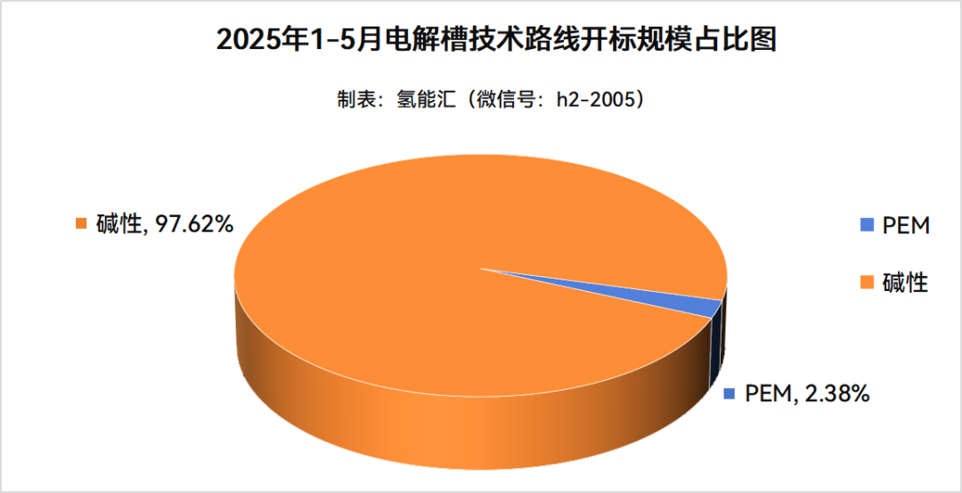 能源圈通过梳理2025年1-5月氢能项目电解槽采购项目,从技术路线来看,包括碱性、pem技术路线。