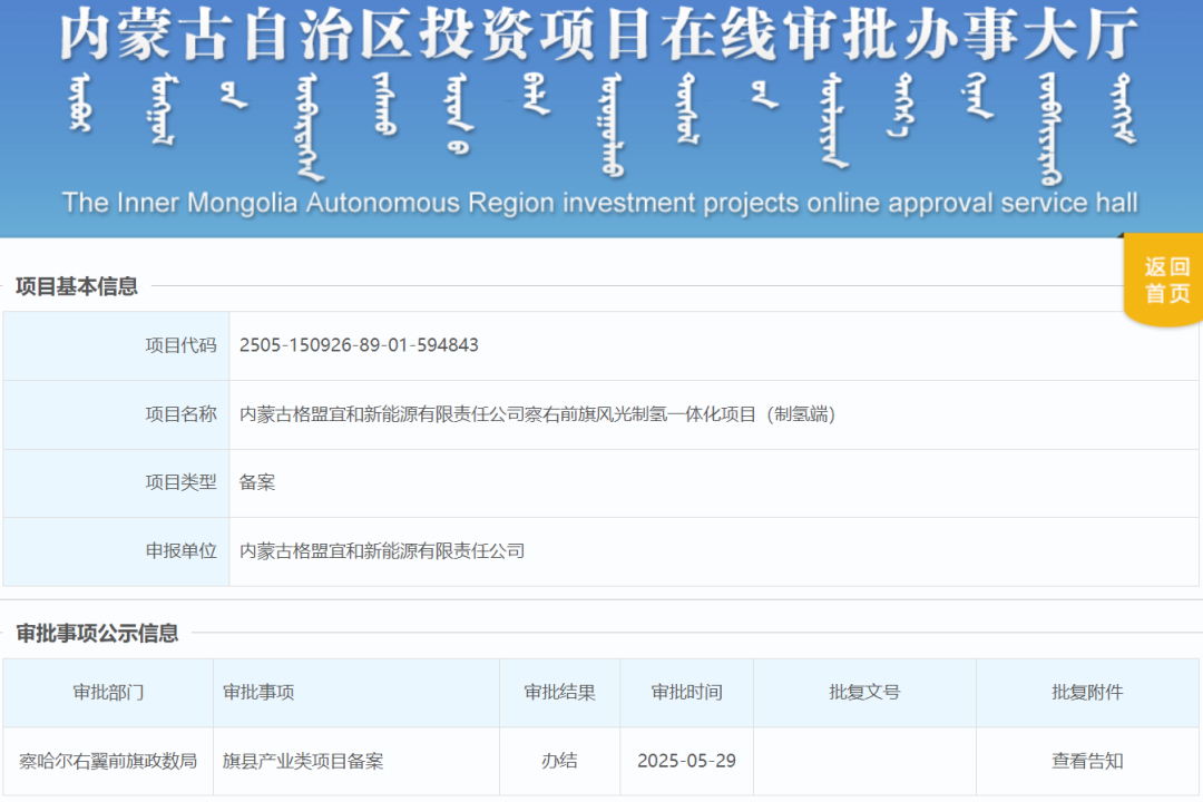 来源:内蒙古自治区投资项目在线审批办事大厅