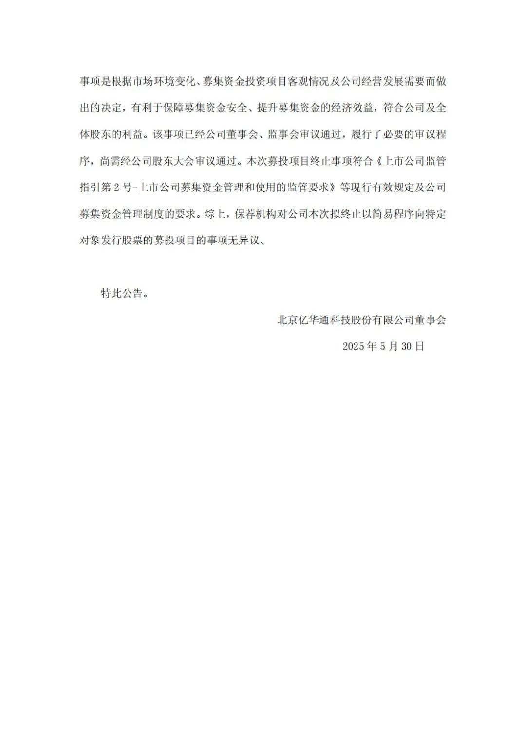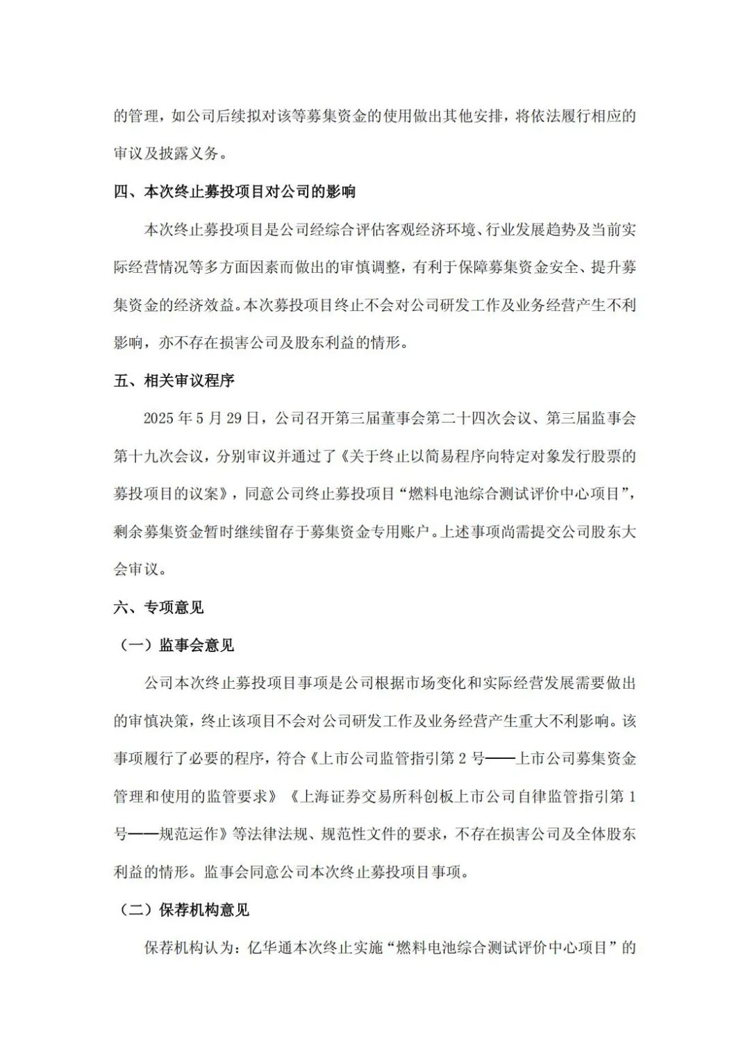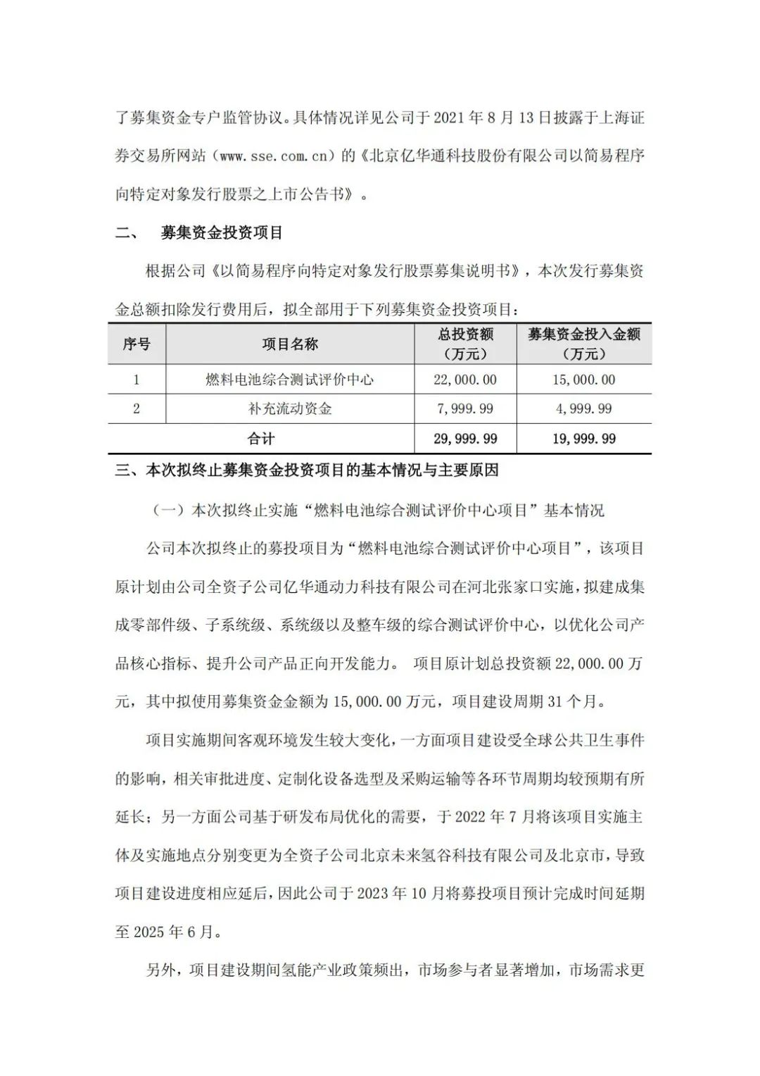 公告称,亿华通召开会议审议通过了《关于终止以简易程序向特定对象发行股票的募投项目的议案》,同意公司终止募投项目“燃料电池综合测试评价中心项目”。