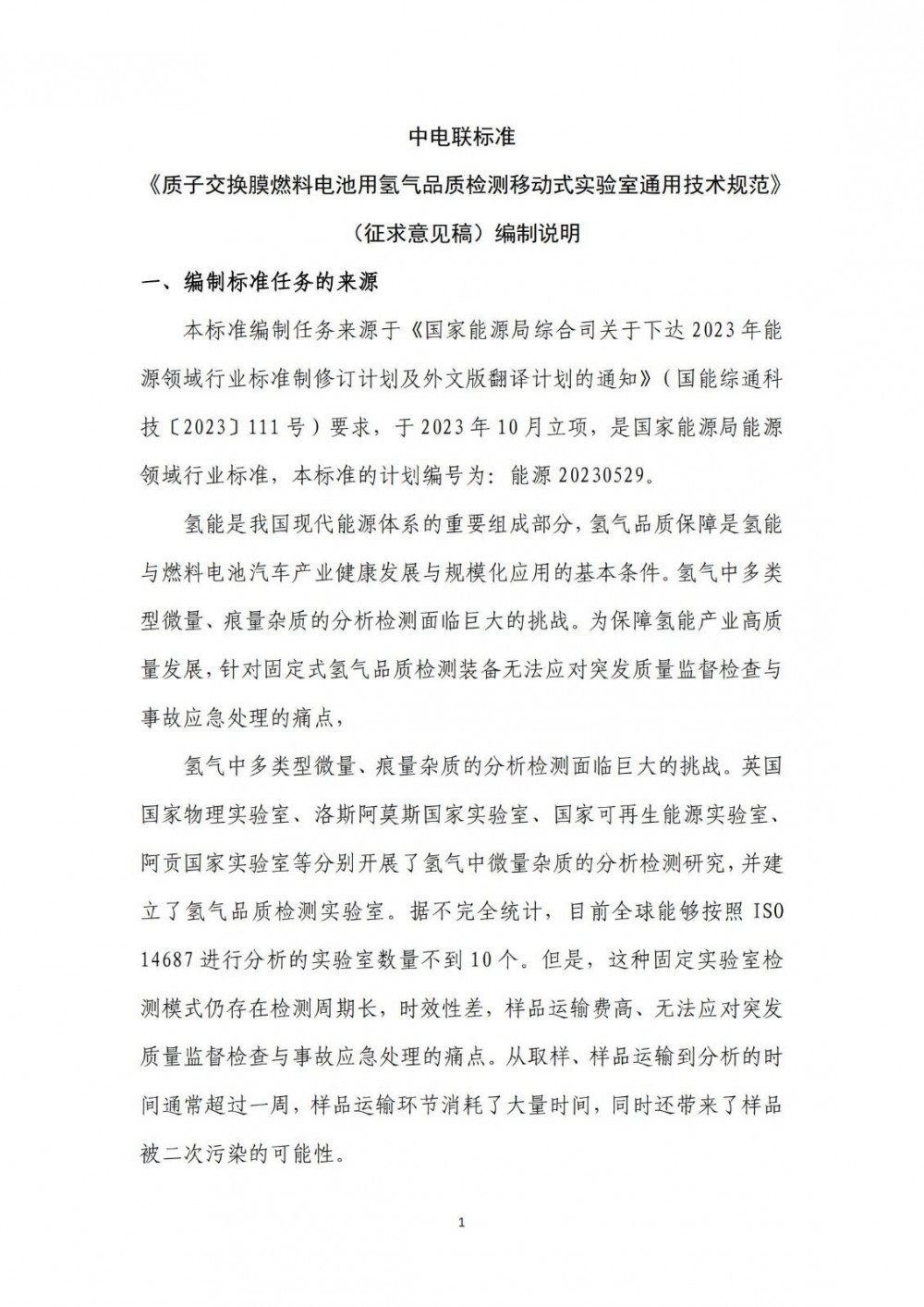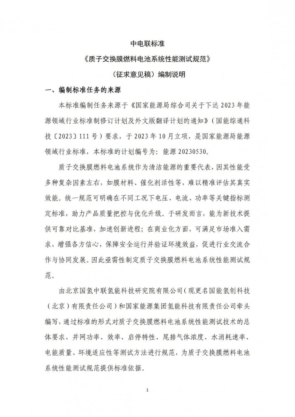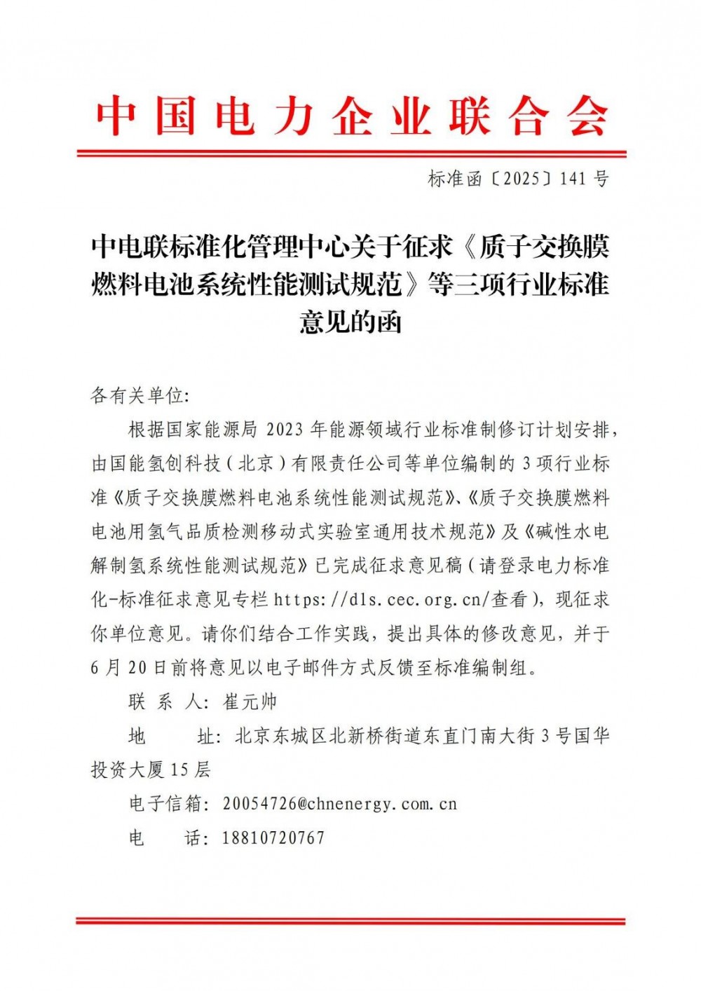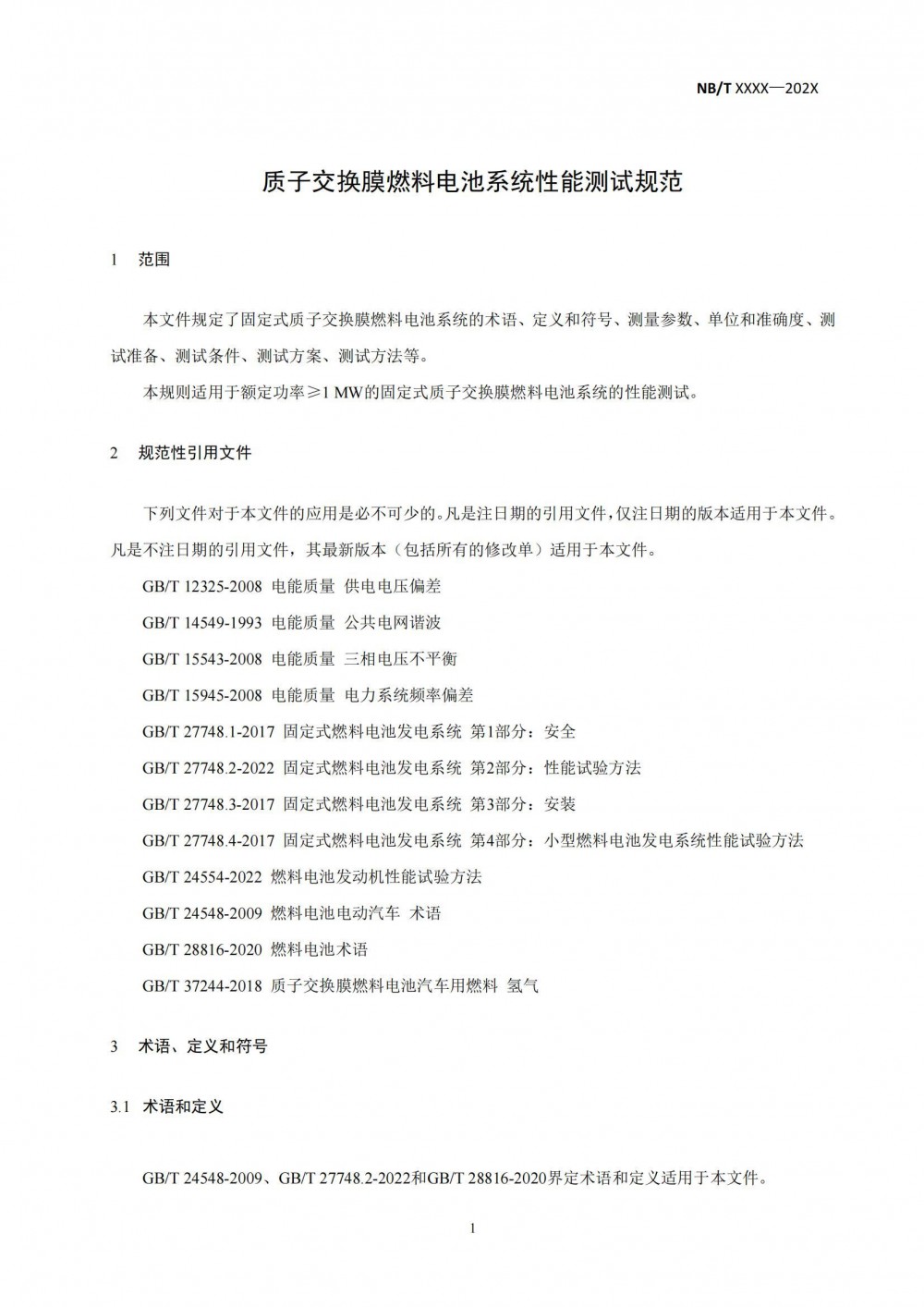 近日,中电联标准化管理中心发布关于征求《质子交换膜燃料电池系统性能测试规范》等三项行业标准意见的函。