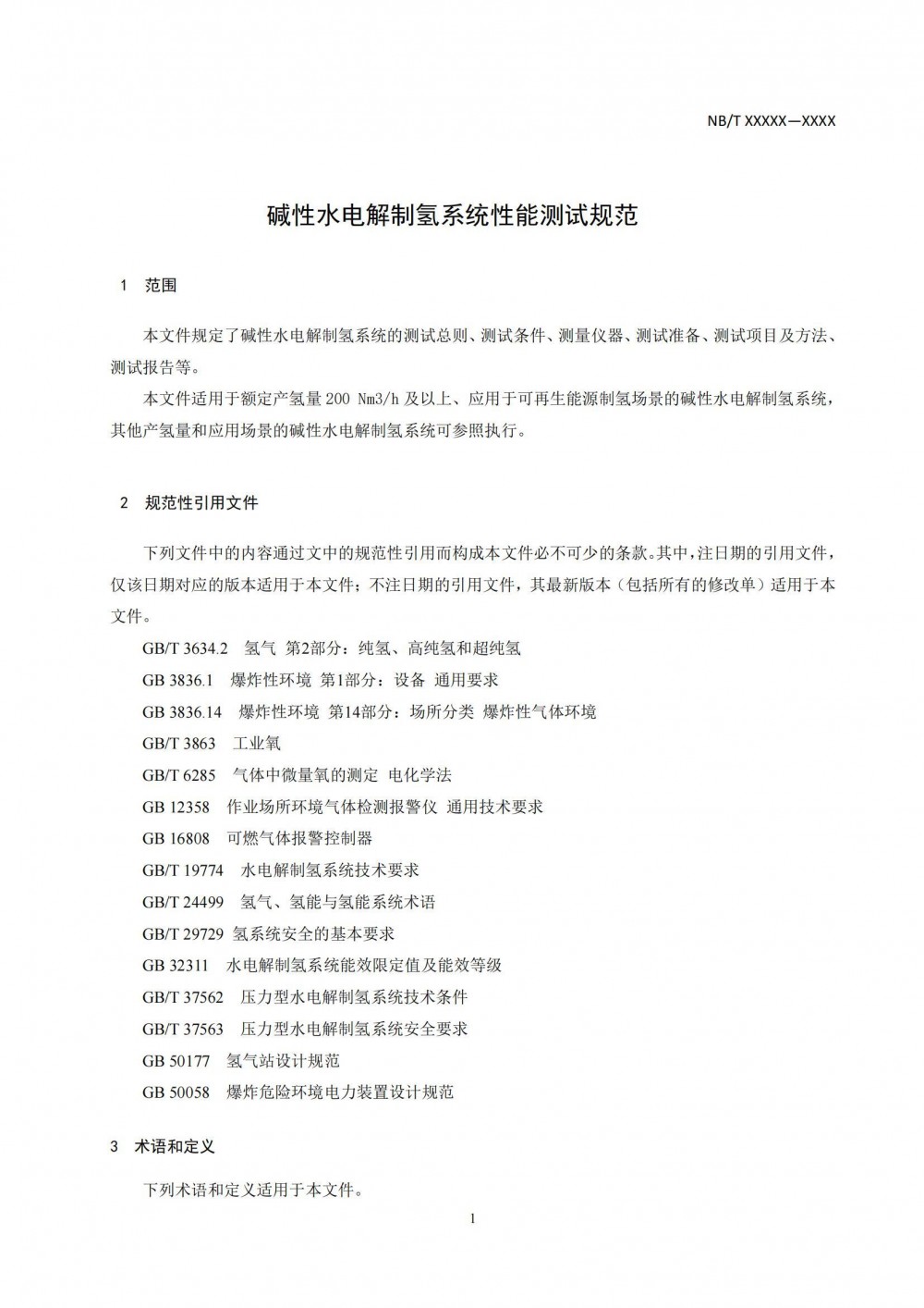 本文件适用于额定产氢量200nm³/h及以上、应用于可再生能源制氢场景的碱性水电解制氢系统,其他产氢量和应用场景的碱性水电解制氢系统可参照执行。