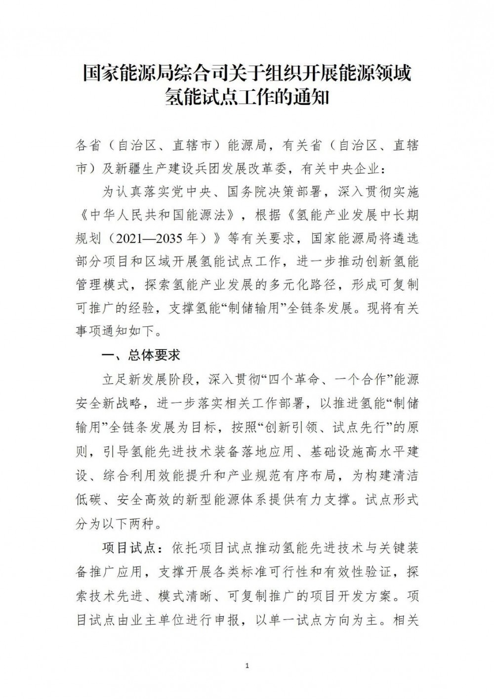 附件:国家能源局综合司关于组织开展能源领域氢能试点工作的通知.docx