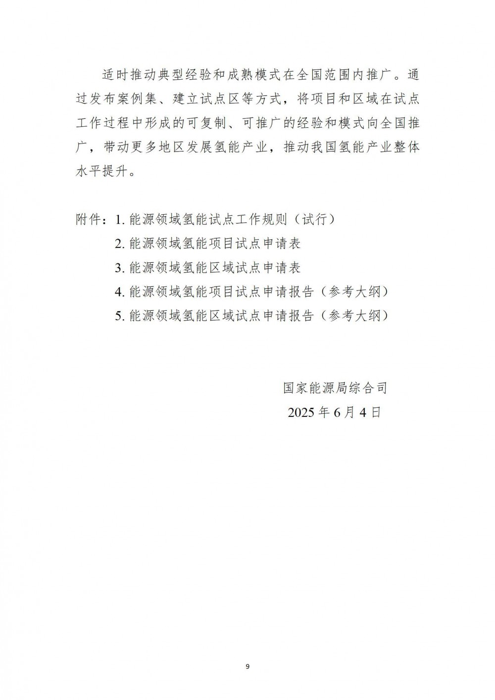 附件:《国家能源局综合司关于组织开展能源领域氢能试点工作的通知》(国能综通科技〔2025〕91号)