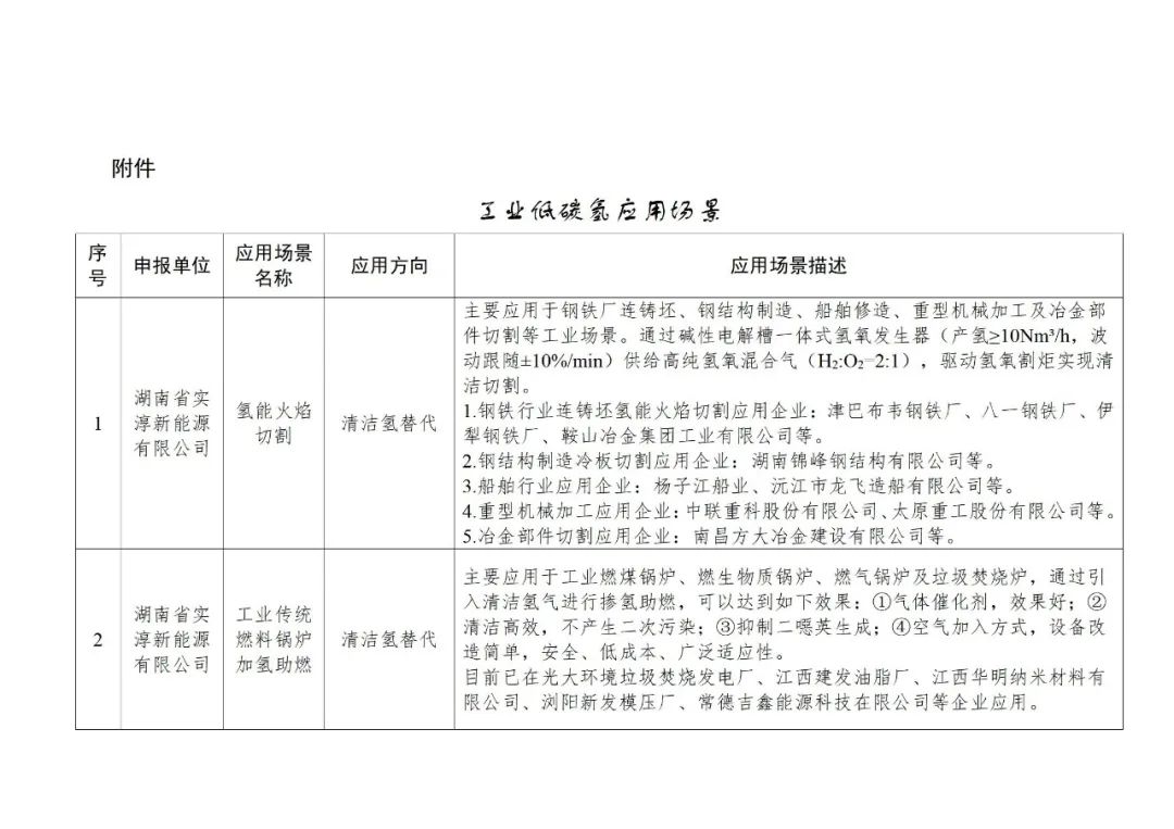 关于湖南省工业低碳氢应用场景的公示