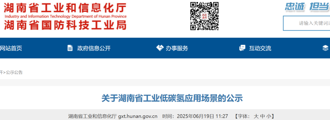 氢能汇获悉,6月19日,湖南省工业和信息化厅发布《关于湖南省工业低碳氢应用场景的公示》。