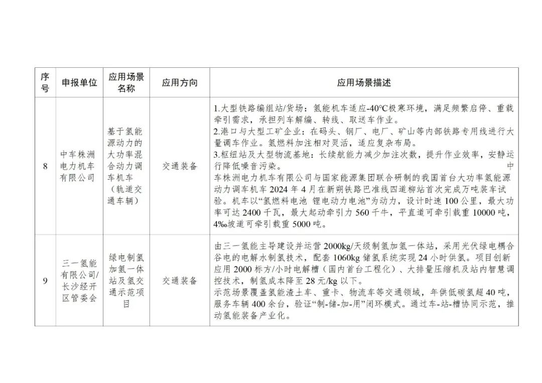 申报单位分别是湖南省实淳新能源有限公司、醴陵陶润实业发展有限公司、淳华氢能源科技(湖南)有限公司、湖南润泽新能源科技有限公司、三一氢能有限公司/涟源钢铁集团、湖南安淳高新技术有限公司、中车株洲电力机车有限公司、长沙经开区管委会、湖南国磁动力科技有限公司、国家先进轨道交通装备创新中心、北汽福田汽车股份有限公司长沙超级卡车工厂、长沙普罗科环境装备有限责任公司、国网湖南省电力有限公司电力科学研究院 / 国网株洲供电公司/湖南振邦氢能科技有限公司、氢能时代(湖南)科技有限公司。