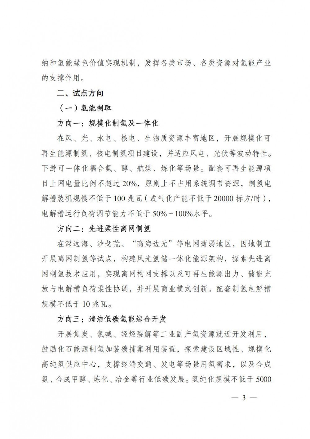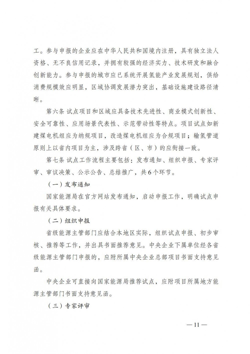 二、试点方向。包括氢能制取、储运、应用及共性支撑等4大方向、共11个小方向。各试点方向具体要求见《通知》。