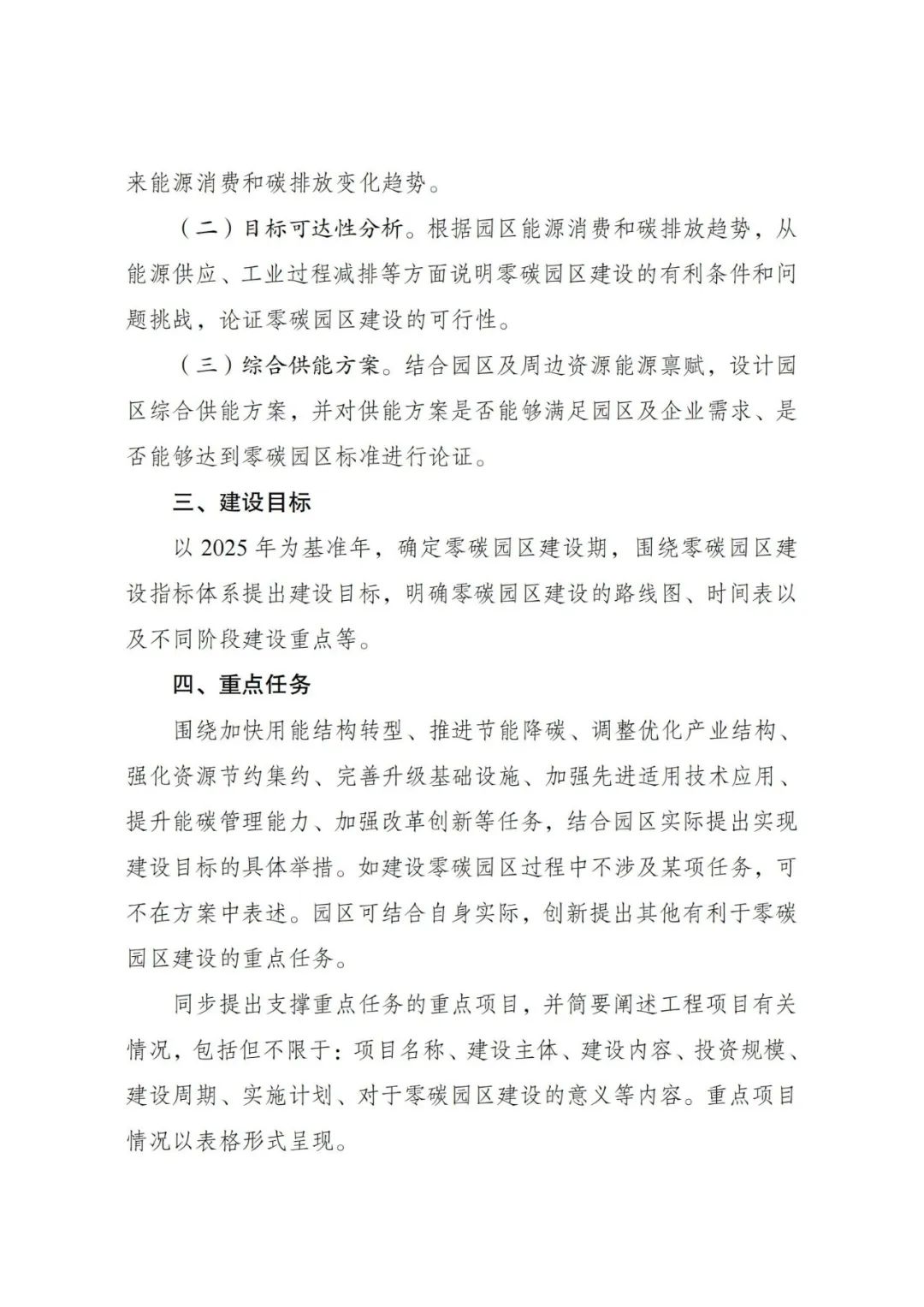 为贯彻落实党中央、国务院决策部署,积极稳妥推进碳达峰碳中和,加快经济社会发展全面绿色转型,支持有条件的地区率先建成一批零碳园区,逐步完善相关规划设计、技术装备、商业模式和管理规范,有计划、分步骤推进各类园区低碳化零碳化改造,助力园区和企业减碳增效,为实现碳达峰碳中和目标提供坚实有力支撑。现就零碳园区建设有关事项通知如下:
