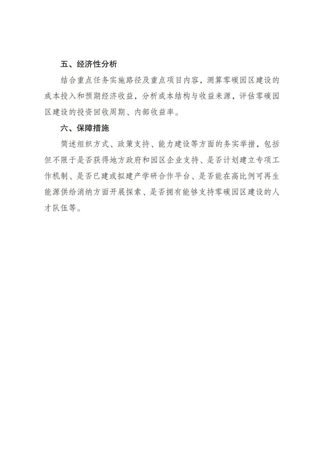 (二)组织园区申报。在综合考虑能源禀赋、产业基础、电力安全可靠供应、减碳潜力等因素基础上,各地区发展改革委要会同本地区工业和信息化、能源主管部门等推荐有条件、有意愿的园区建设国家级零碳园区(基本条件见附件1),并指导园区综合分析项目可行性,测算经济、环境、社会效益,按要求编制申报书(大纲见附件2)。各地区推荐园区数量不超过2个,于8月22日前将推荐园区名单及建设方案报送国家发展改革委(环资司)。