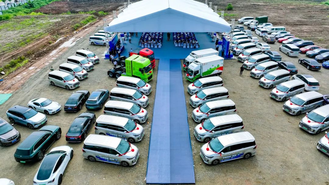 ▲南海百辆氢能公务车投用仪式,左一为中新氢能董事长王德新