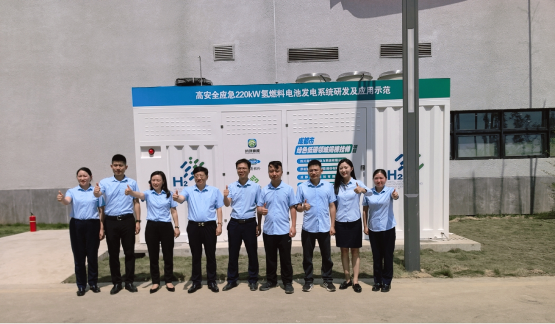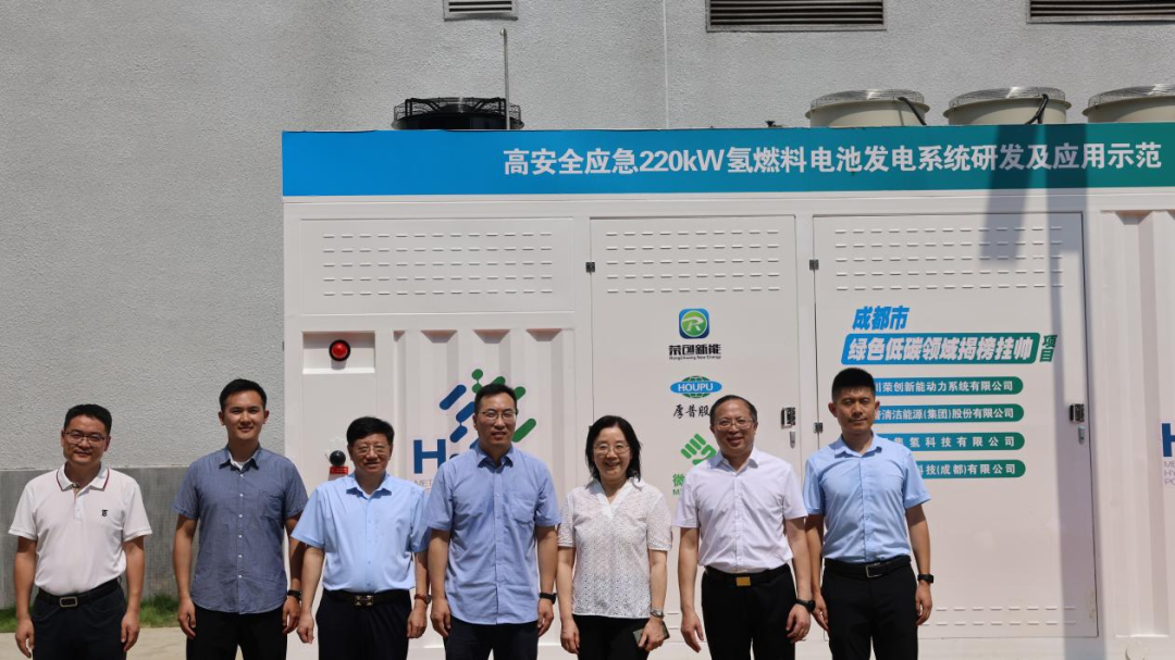 该项目由厚普清洁能源 (集团) 股份有限公司、四川荣创新能动力系统有限公司、成都集氢科技有限公司共同承担,是成都市科技局 “2024 年绿色低碳领域揭榜挂帅项目 — 高安全 220kw 氢燃料电池应急发电系统” 的重要成果。项目团队提前 8 个月完成了产品研制,并在微网优联科技(成都)有限公司举行了隆重的产品发布仪式。成都市新都区副区长贺凯丰以及成都市科技局,成都市经信局,新都现代交通产业园区管委会等相关部门领导,与氢能产业相关企业、院校及媒体代表共同见证了这一重要时刻。