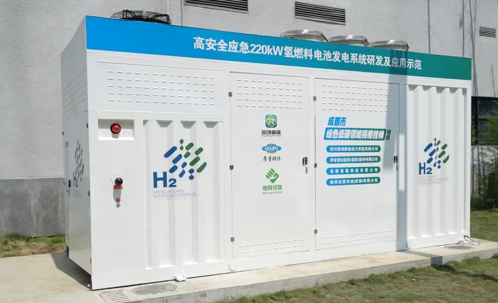 厚普股份作为四川本土企业,已深耕氢能装备领域十余年,参与了国内外百余个加氢站建设,并已成为氢能“制储运加用”全产业链链主企业。此次与荣创新能携手,正是发挥了厚普在固态储氢发电领域的积累——早在2022年,厚普股份已落地国内首个200kw移动式固态氢能发电并网项目,将光伏发电耦合固态储氢应用于电力系统变为现实。此次220kw固态储氢燃料电池应急发电系统示范应用,则完成了燃料电池与电力变换系统的高效耦合,与无缝切换的工程验证。