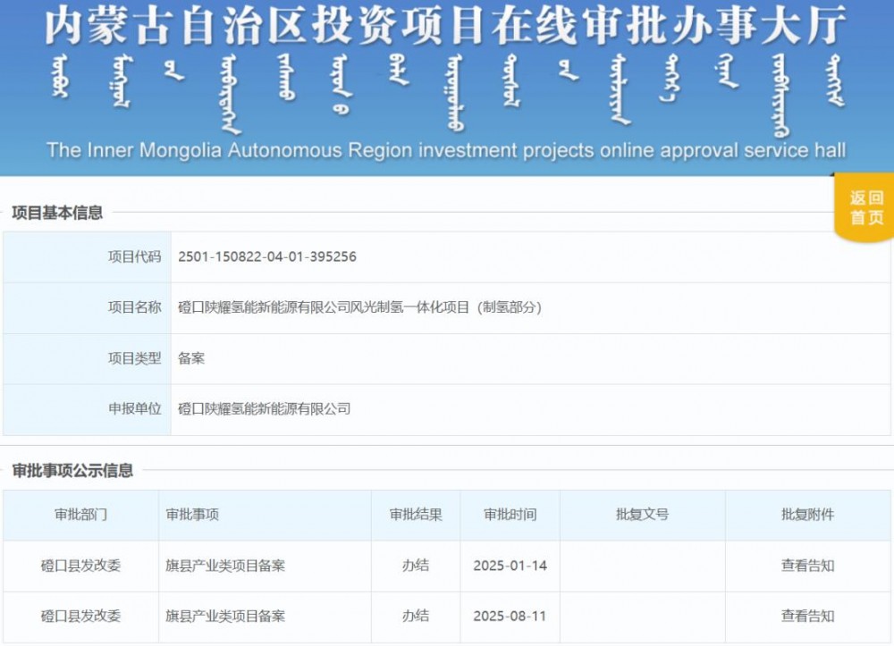 能源圈获悉,8月11日,磴口陕耀氢能新能源有限公司风光制氢一体化项目(制氢部分)获备案。