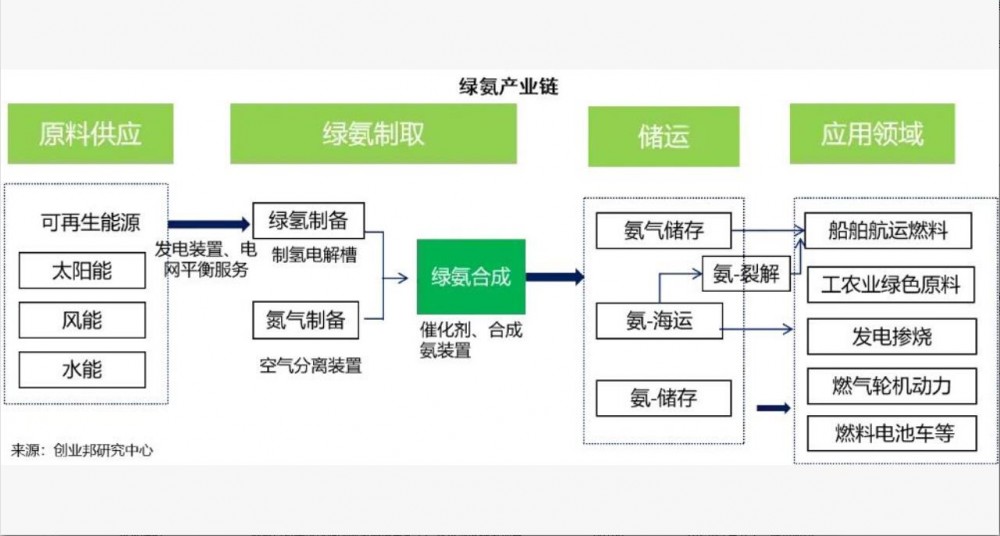 绿氨由电解水制取的绿氢与空分装置捕获的氮气经合成工艺而得。绿氨生产主要包括绿氢制备、氮气制备和合成氨三个单元。其中空气分离制备氮气和氨合成工艺技术成熟,完全可以采用现有产业技术。在绿氢制备,碱性电解槽(alk)技术较成熟,质子交换膜(pem)电解槽在示范应用阶段,阴离子交换膜(aem)电解槽正在快速发展中。