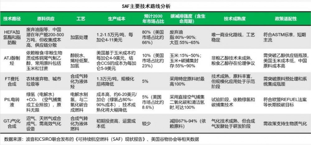 saf:重点关注g ft、ptl等新路线的创新企业,关注其技术可行性与科研资源支撑、整体成本预估以及团队商业化能力;
