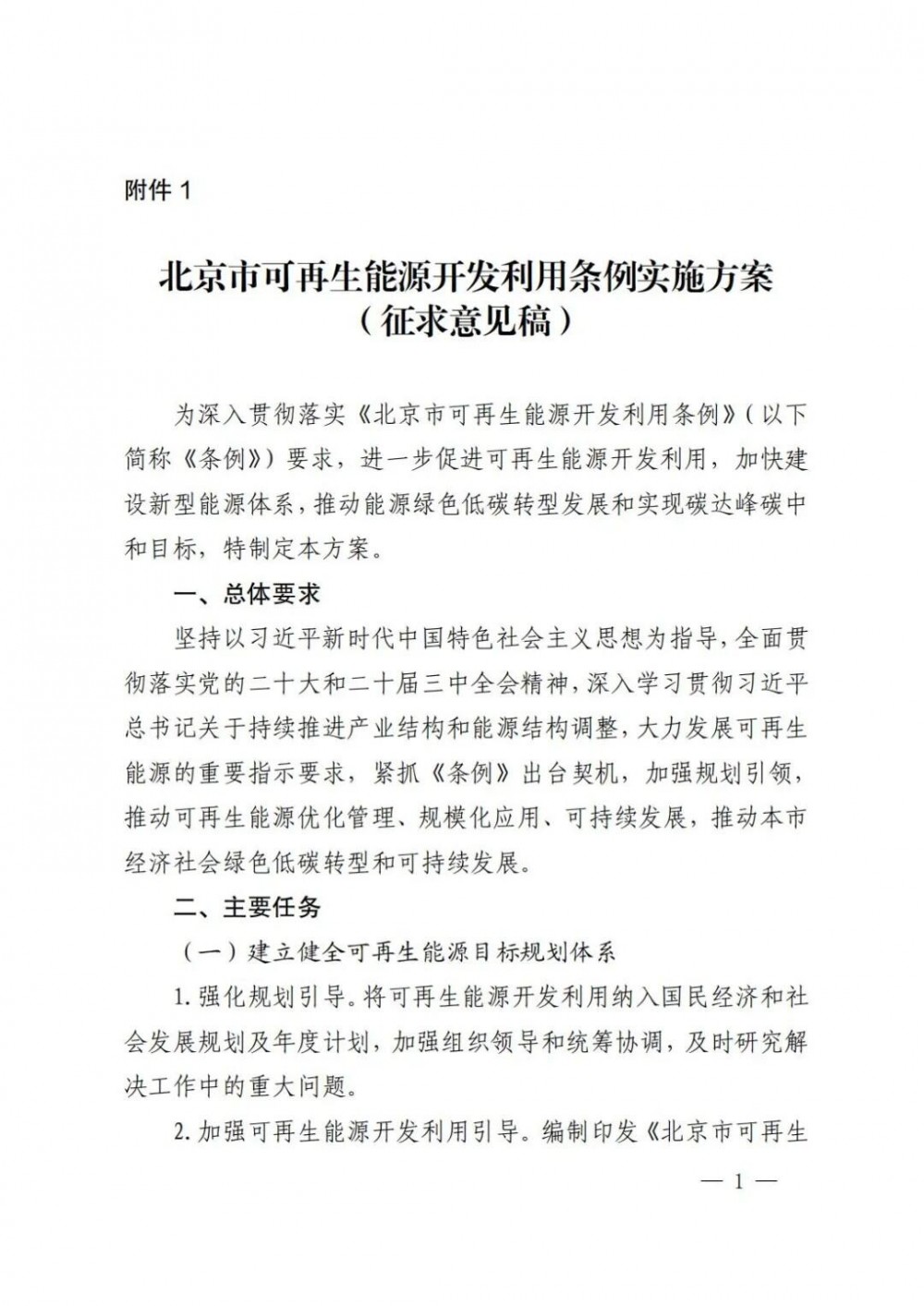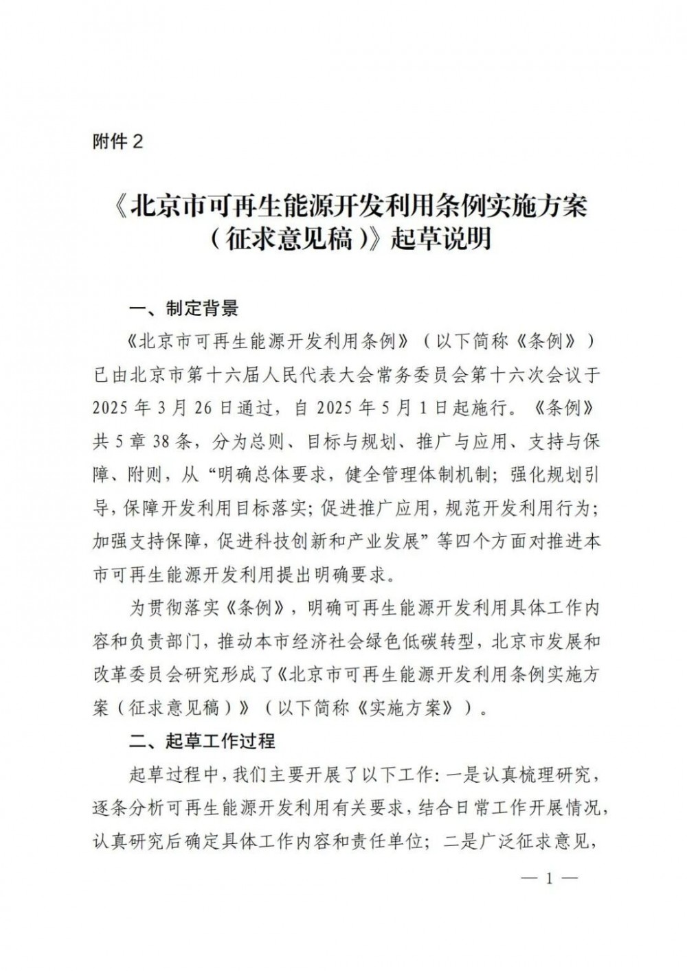 近日,北京市发展和改革委员会发布关于对《北京市可再生能源开发利用条例实施方案(征求意见稿)》公开征求意见的公告。
