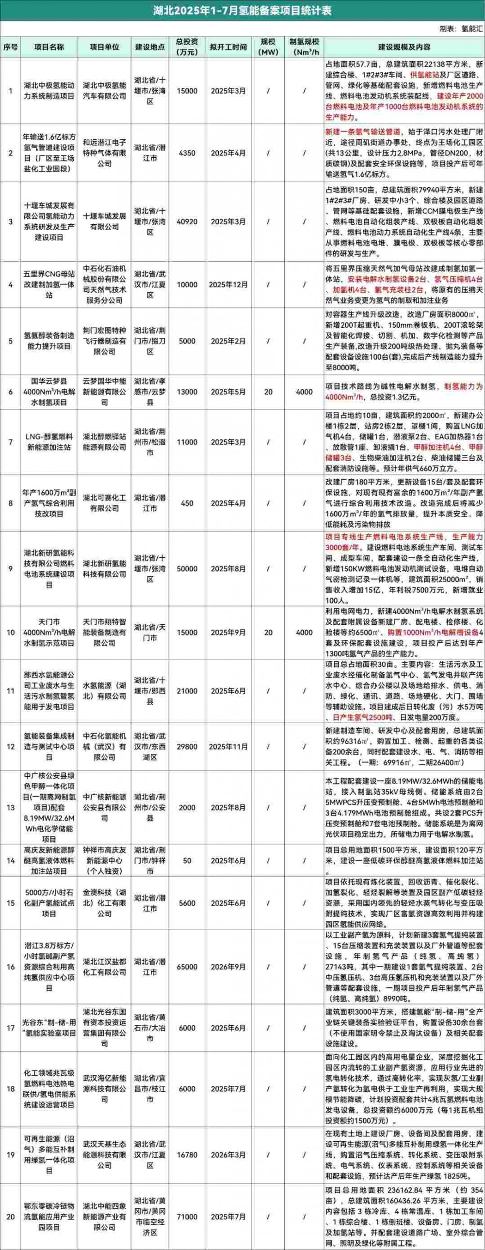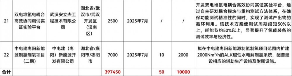 湖北氢能备案项目22个,项目投资合计为397450万元,规模总计50mw,制氢规模总计10000nm³/h。