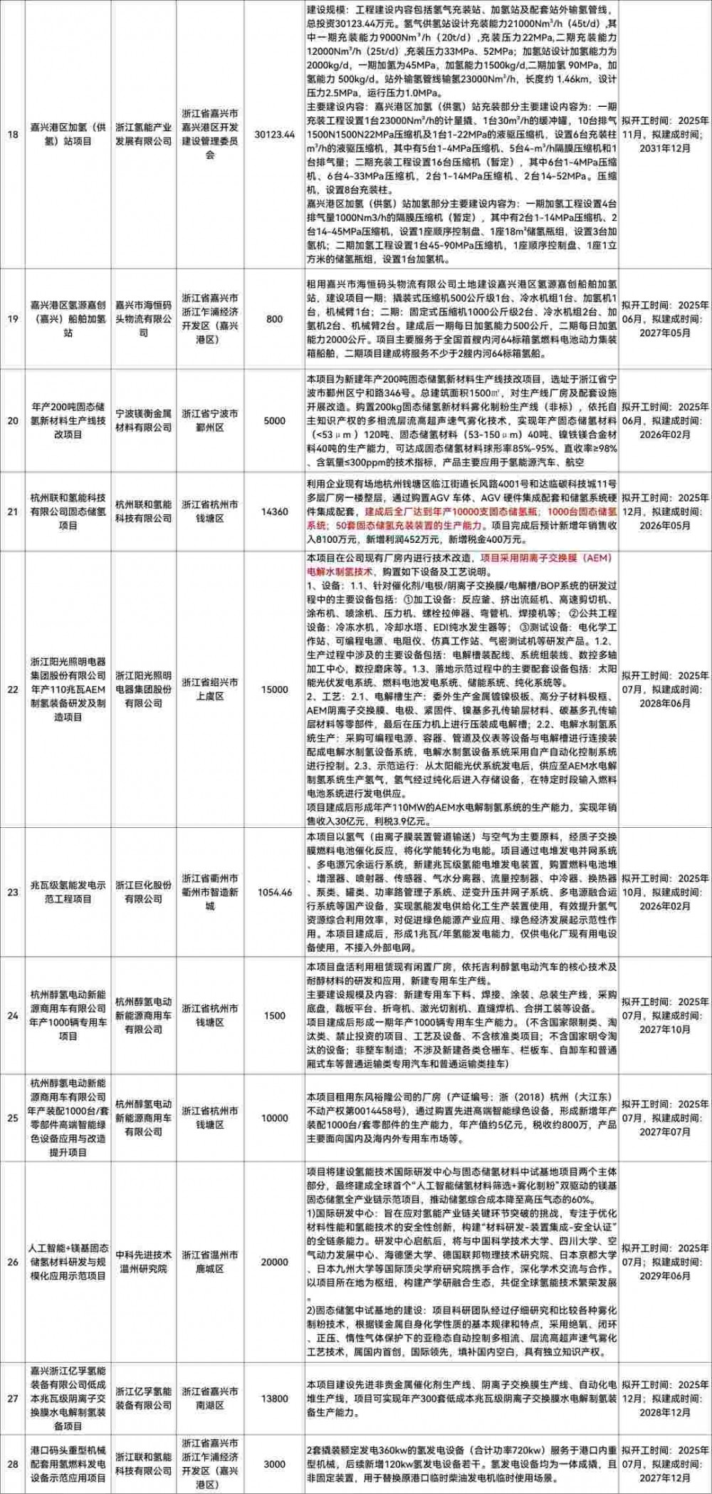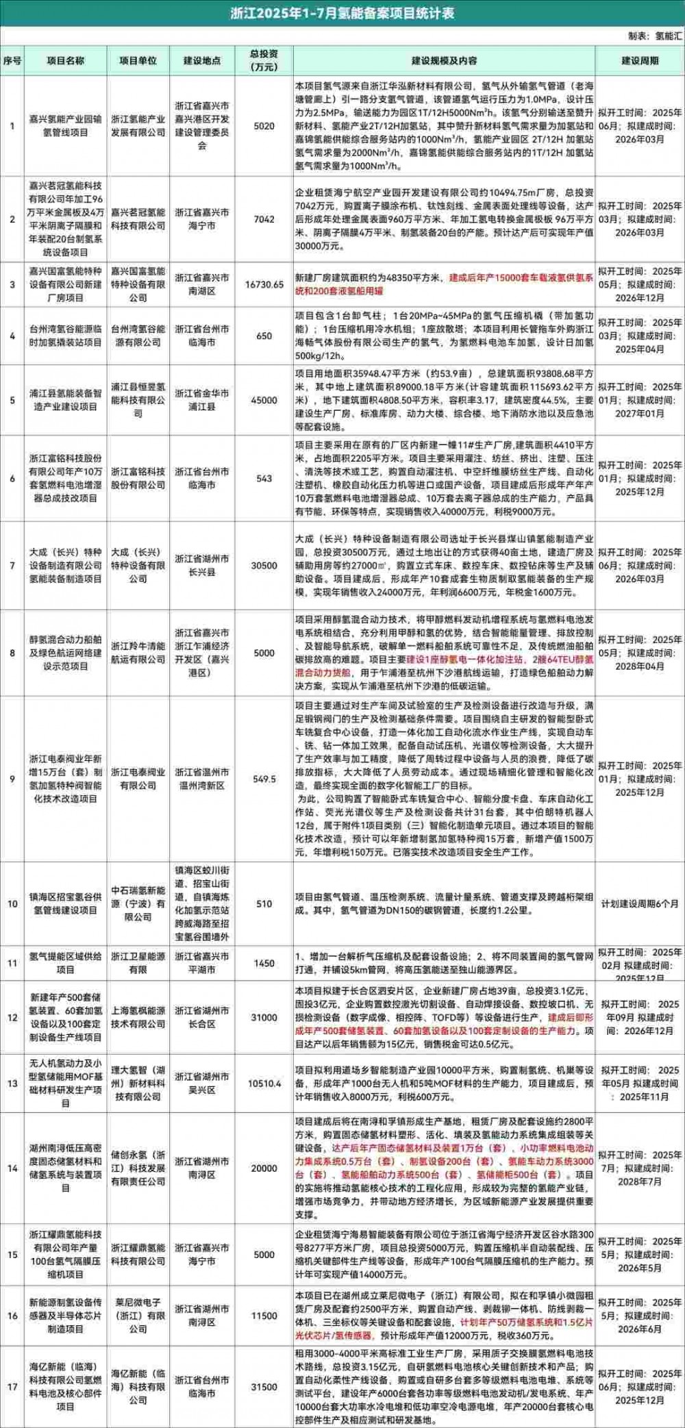 浙江氢能备案项目33个,项目投资合计为453718.07万元。