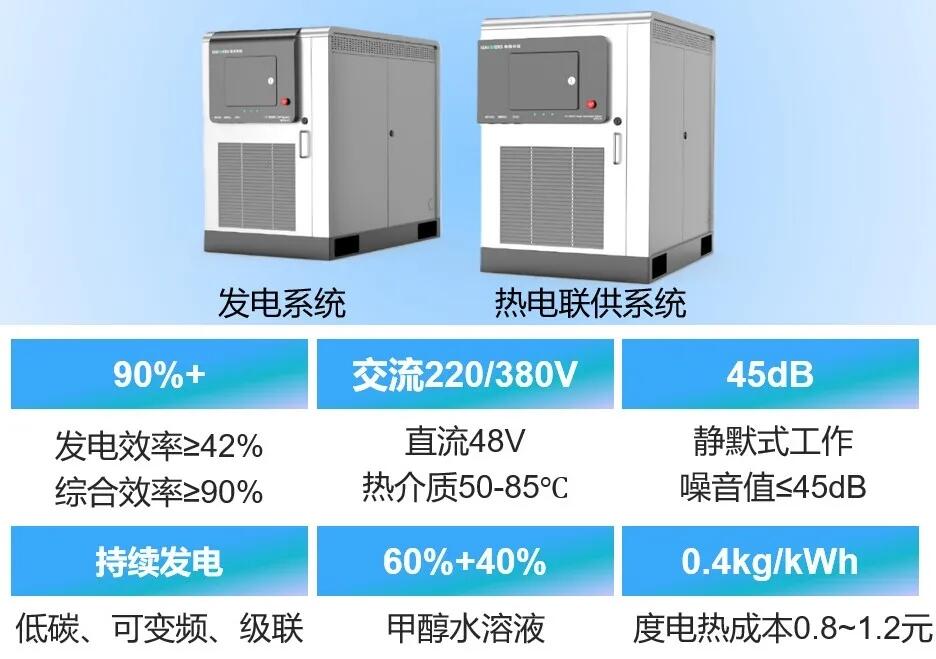 海得利兹甲醇重整高温膜燃料电池热电联供系统作为甲醇氢能燃料电池技术,使用甲醇作为燃料,甲醇通过重整成为富氢气体(粗氢,非纯氢)直接通入高温质膜燃料电池电堆进行发电及产热,氢能即产即用,具备离网及并网工作模式。系统可输出220/380v交流电或48v直流电及输出50-85℃热水。其电能可用于照明、设备、充电桩、电器等供电,热能可用于生活供暖或生活热水等。