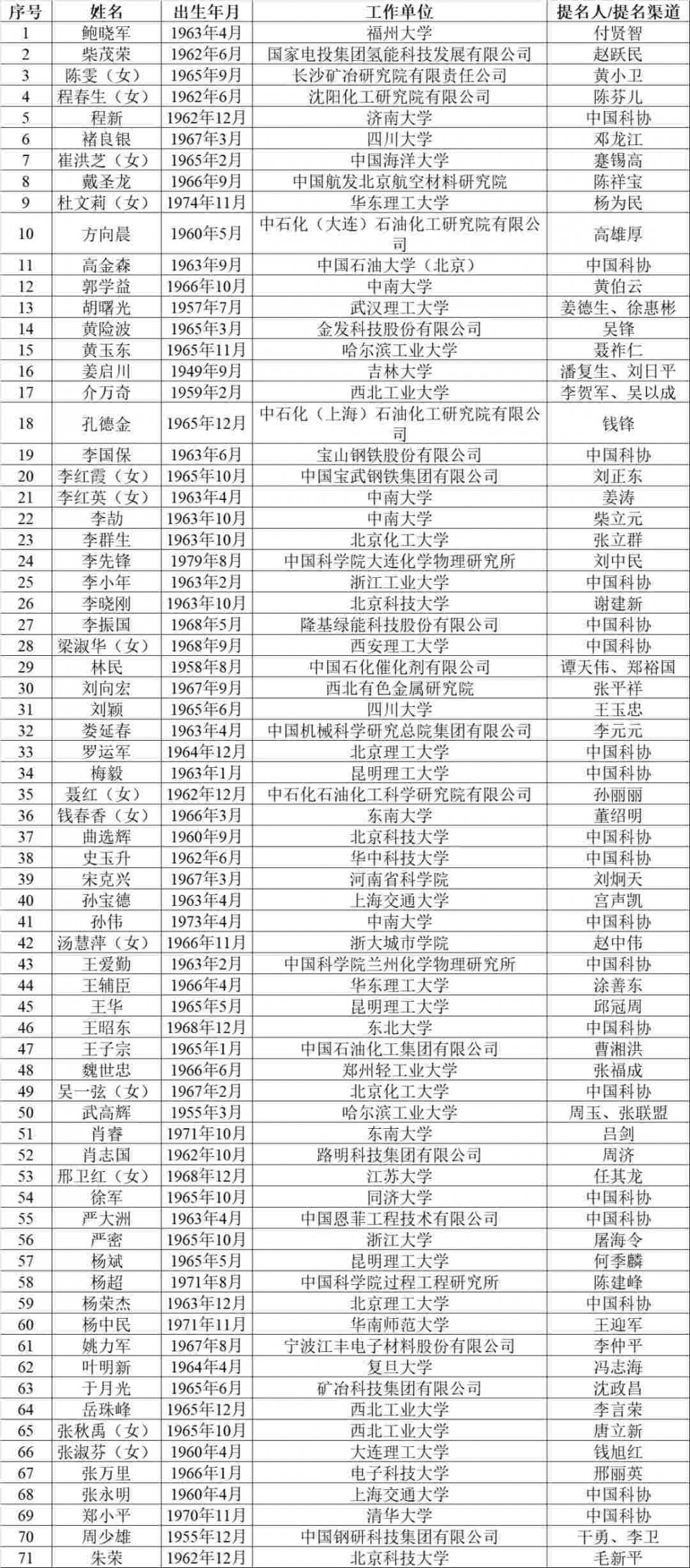 此外,本次公布的院士候选人名单中,来自国家能源集团、国家电投、国家电网、南方电网等电力央企,以及中石油、中海油等能源央企的多人入选。