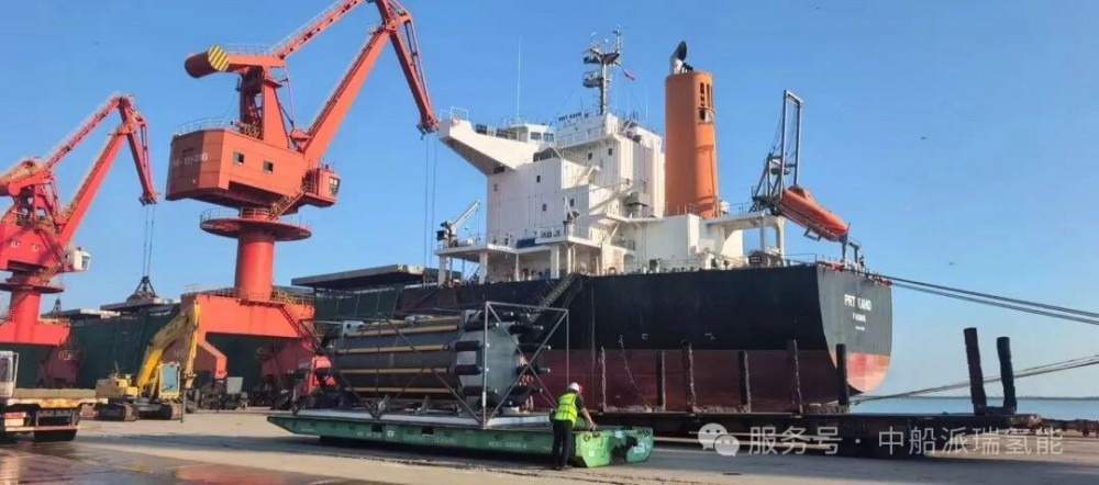 近日,中船集团第七一八研究所旗下中船(邯郸)派瑞氢能科技有限公司(以下简称“派瑞氢能”)完成50mw共计十台1000nm³/h电解槽设备完成最后的运输装船工作,从连云港港正式发往希腊比雷埃夫斯港。这一里程碑式的时刻,不仅标志着派瑞氢能成功交付欧洲市场首笔大型绿氢订单,也为欧洲绿氢产业发展注入了新动力。