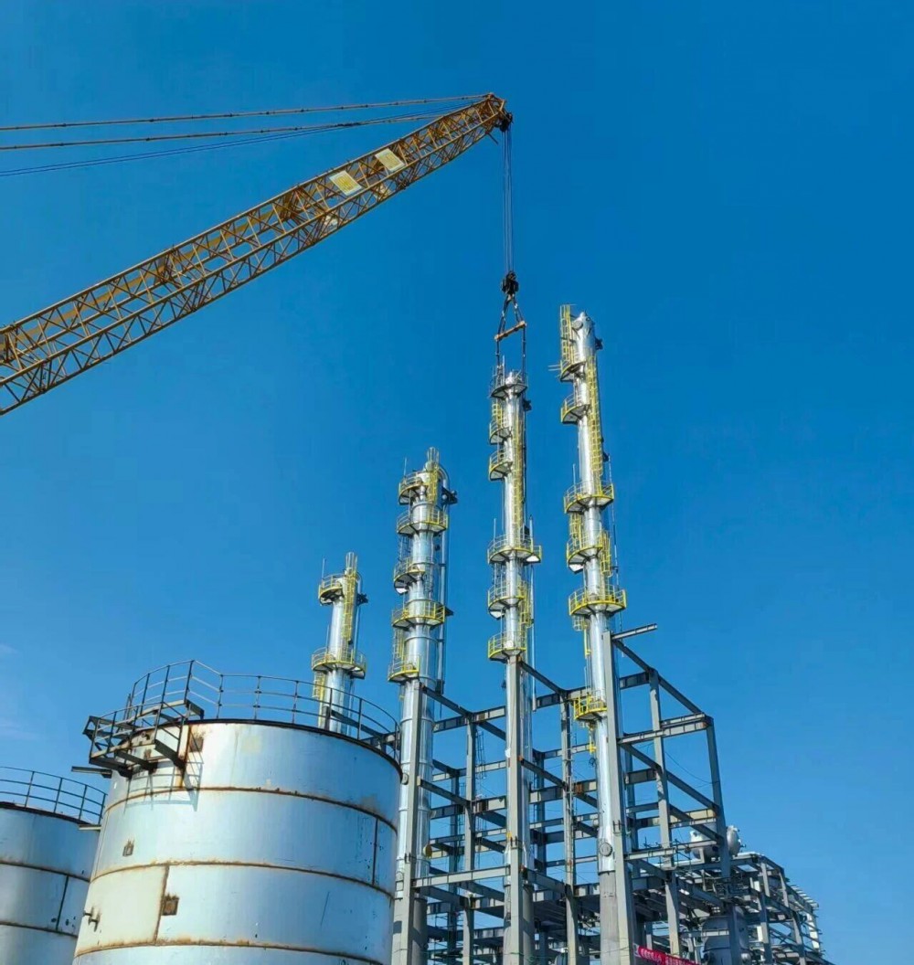 近日,中国化学天辰公司总承包的上海华谊工业气体有限公司10万吨/年绿色甲醇项目顺利完成四台精馏塔吊装,标志着项目土建施工阶段正式收尾,全面进入设备安装阶段。