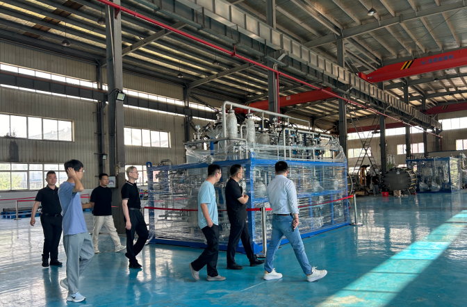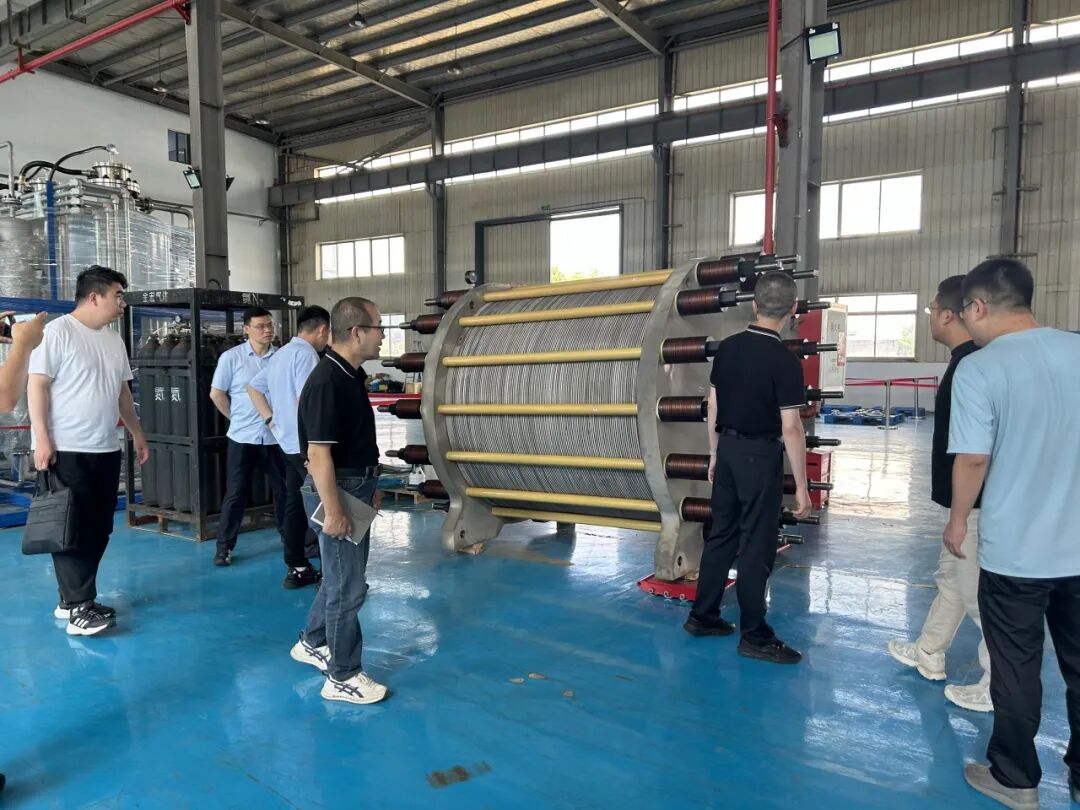 考察期间,来访嘉宾在我司人员陪同下进行了深入参观与交流,全面了解了鑫思创在氢能装备研发、制造及产业化应用等方面的整体布局与发展成果。