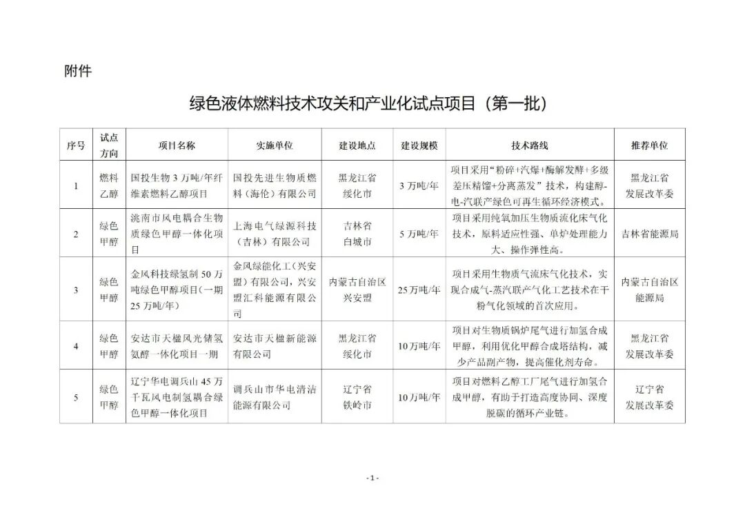 国家能源局综合司关于开展绿色液体燃料技术攻关和产业化试点工作(第一批)的通知