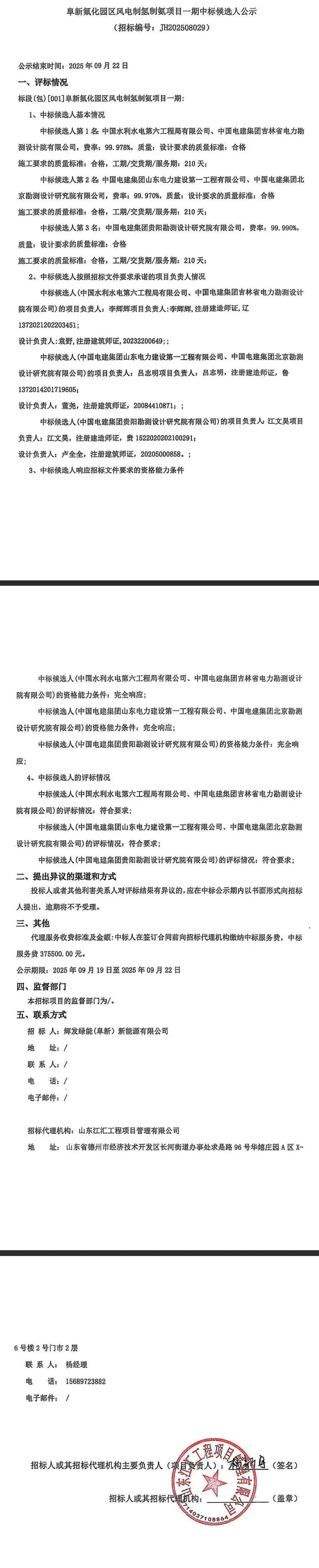 能源圈获悉,9月19日,阜新氟化园区风电制氢制氨项目一期中标候选人公示。