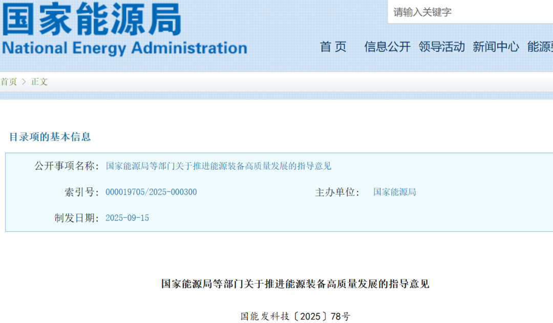 能源圈获悉,9月22日,国家能源局等部门发布关于推进能源装备高质量发展的指导意见。