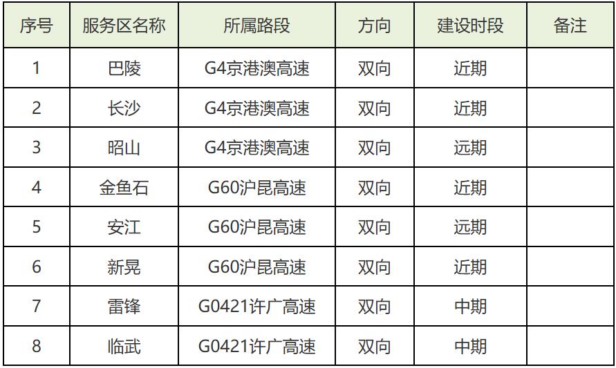 3.远期(2031-2035年)。力争完成g4京港澳昭山服务区、g60沪昆高速安江服务区等2对4座加氢站建设。