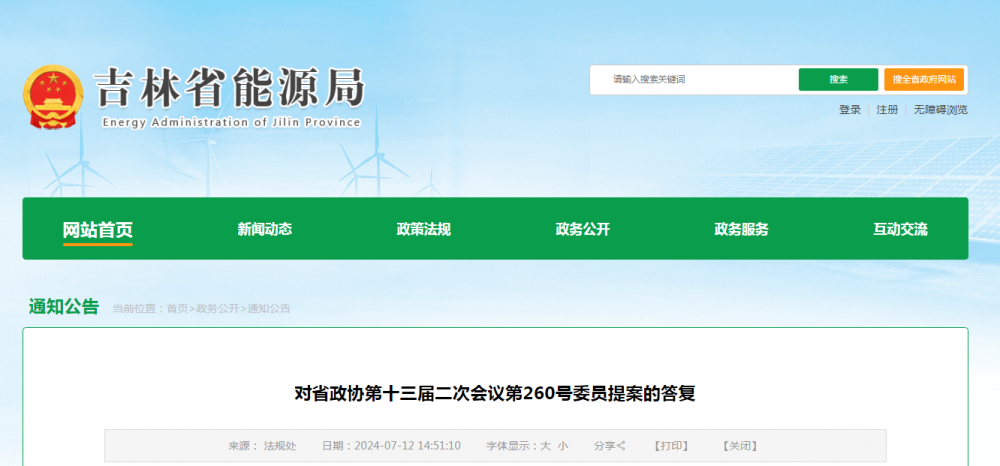 近日,吉林省能源局发布对省政协第十三届二次会议第260号委员提案的答复。